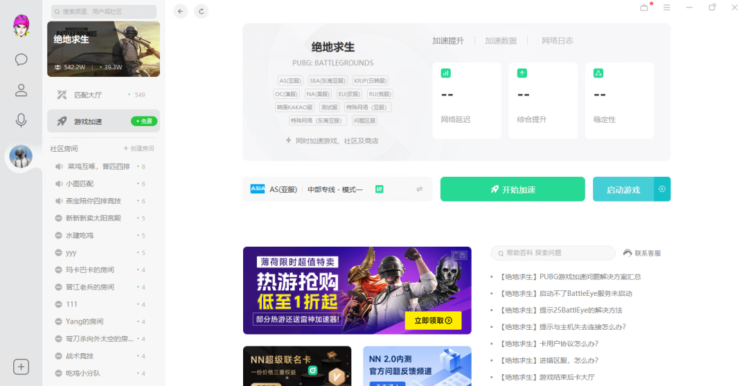 进入软件后首先你需要点击左下角加号加入游戏社区,然后才能选择加速游戏。