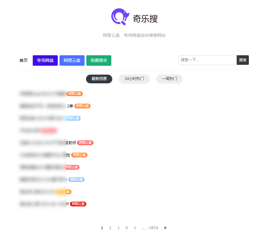 奇乐搜 – 免费网盘在线搜索工具,阿里云盘、夸克网盘资源搜索引擎