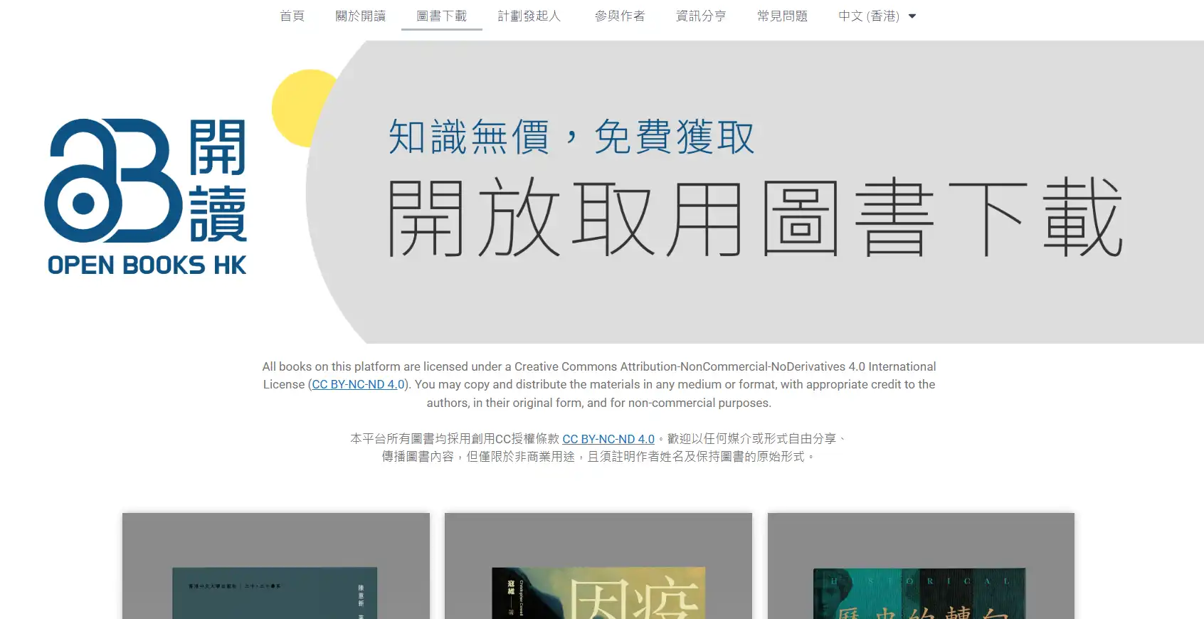 港大、中大、城大联合推出「开读」计划,开放全部港版中文学术著作,免费下载、可传播、无版权障碍。所有书籍均经匿名同行评审,采用 CC-BY-NC-ND 4.0 授权,免费面向全球读者在线阅读、下载与传播。